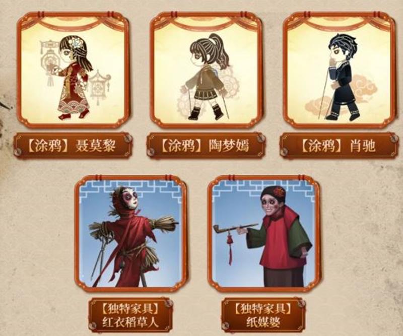 本次联动将推出多款限定时装和随身物品。包括调香师的稀世时装“聂莫黎”以及稀世随身物品“纸扎祠堂”,古董商的奇珍时装“陶梦嫣”,小说家的奇珍时装“肖驰”。玩家可以通过完成活动任务免费领取古董商-陶梦嫣或小说家-肖驰的奇珍时装,也可以选择在商城限时购买。