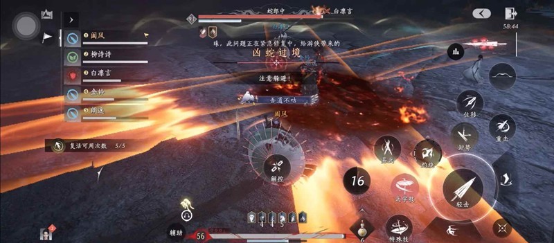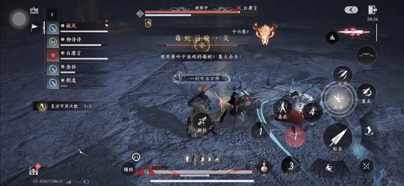 打法:红光后接黄光,注意反应。万蛇过境地图上一大片黄圈、注意自己脚下的和地图覆盖的,疯狂躲避。小火蛇用笛子击杀,大寒蛇需要引导其到火蛇死后的火焰上,考验配合。