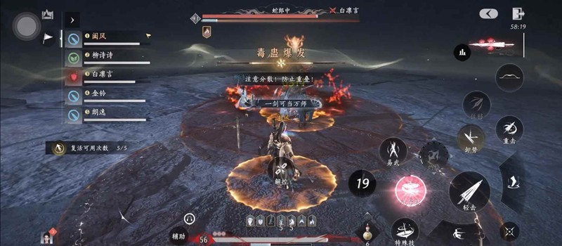 4.毒蛊爆发:每个人脚下会出现黄圈,进度条满了后会在脚底爆炸毒圈(可三段跳或在快满时闪避躲伤害),所有人分散,不要让黄泉扎堆。