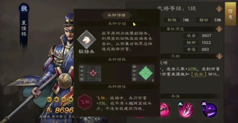 夏侯惇是魏国重骑兵将领的代表,第一次转职后成为古骑兵,拥有8个攻击位置。他的攻击力和防御力都十分出色,是冲锋陷阵的主力。典韦则担任坦克角色,主动技能和大招都能造成范围伤害,附带减速和禁足效果。