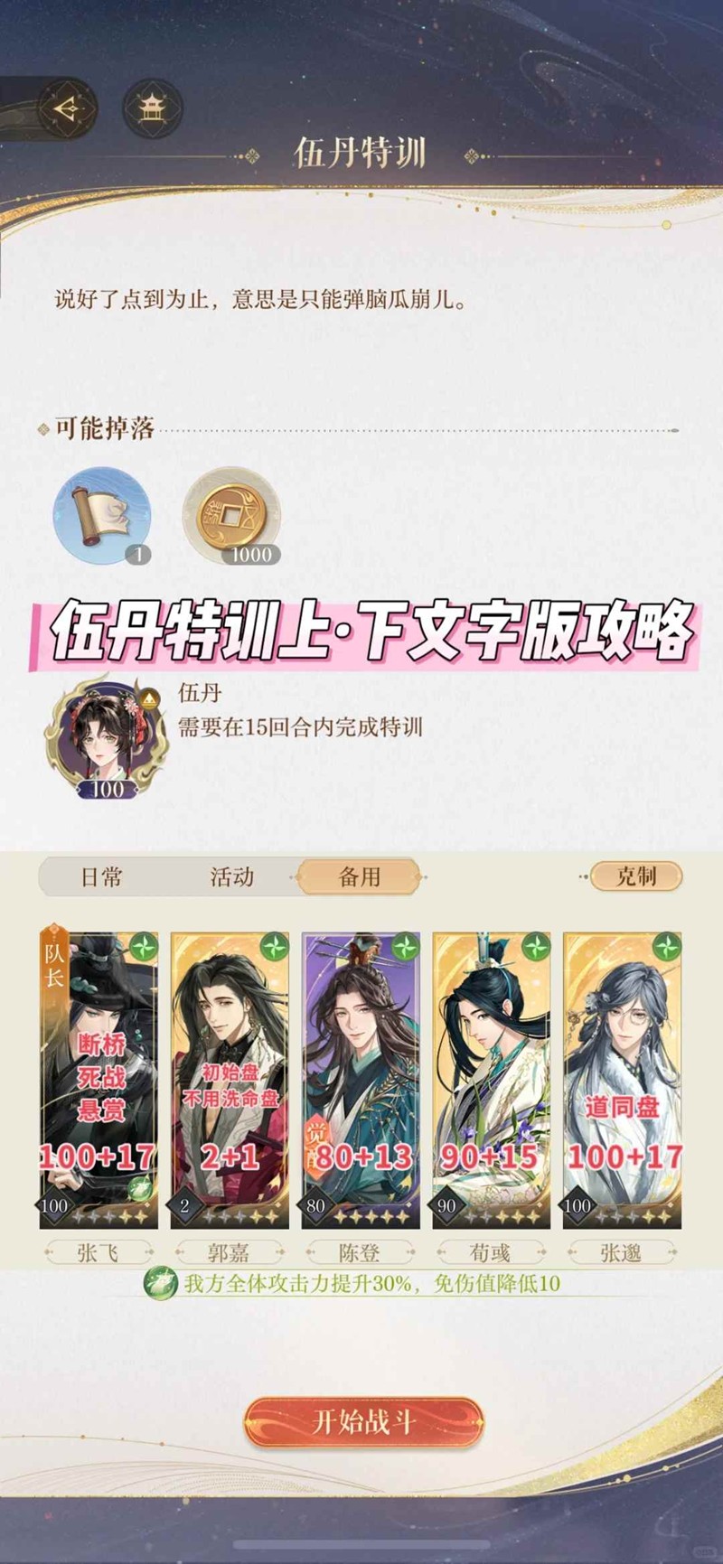 以上就是如鸢伍丹特训上·下文字版攻略的全部内容了,更多游戏资讯,攻略内容敬请关注切游网,您的支持是我们努力的动力!