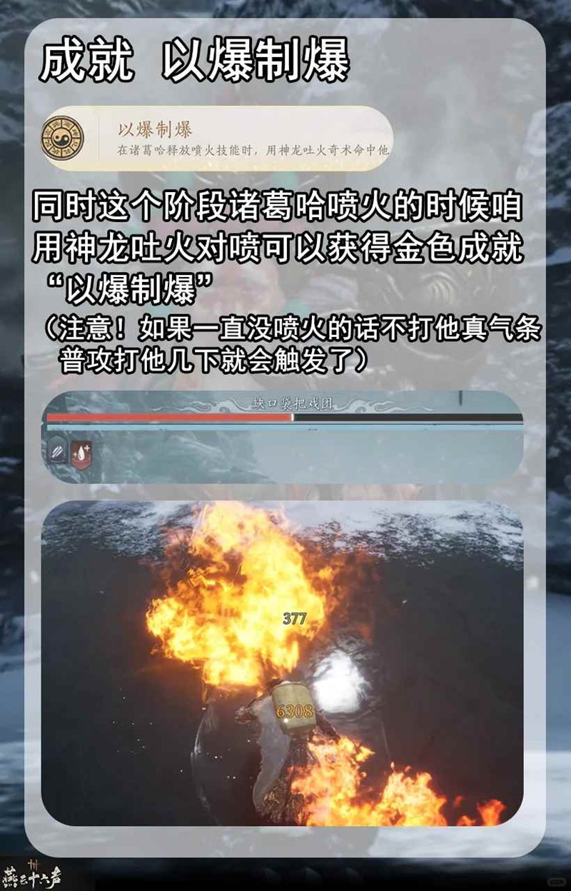 同时这个阶段诸葛哈喷火时候咱用神龙吐火对喷可以获得金色成就“以爆制爆”
