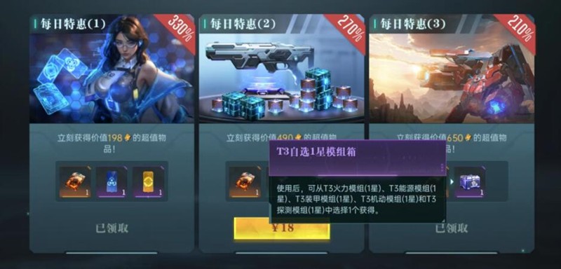 星球探索通关第7关和第10关可分别领取10个T2模组箱,建议优先扫荡高难度关卡。限时活动如星际宝藏是获取高阶模组的重要途径,平民玩家可以选择88抽档位,保底获得12个T3模组。中氪玩家拉满1798抽可直接合成T5兵种。赛季任务每周刷新,完成虫巢任务可额外获取模组箱。