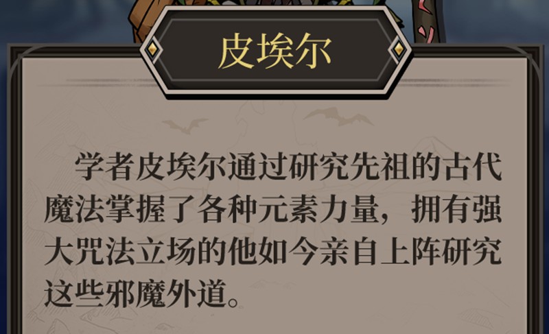 皮埃尔在高殿战记中定位为远程魔法输出型术士,擅长控场和施加威胁。他可以通过各种魔法技能对敌人造成可观的伤害,同时还能使用控制技能来影响整个战局的走向。这个角色的职业选择非常灵活,玩家可以根据自己的喜好选择立场法师、召唤师等不同发展方向,后期还能转职为咒术师。