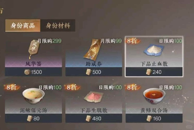 ①新赛年只会保留300w的交子 除了种子和肥料之外还可以在江湖身份商店里买一下这些 什么止血散和泥鳅汤 这些帮派货运有时候要交的