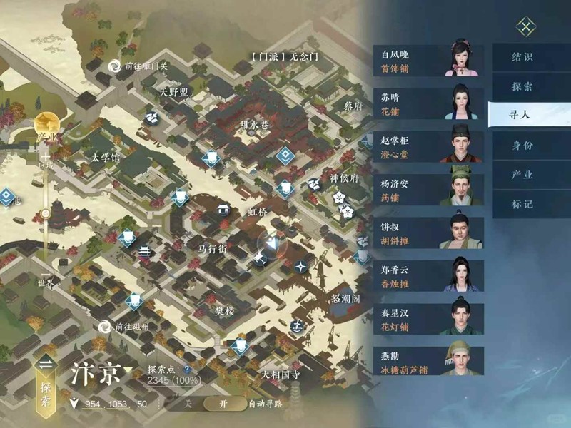 ②如果很闲的话可以打开地图左下角的标签点击寻人 找这些在地图里的商店买买这些零零碎碎的小垃圾 有时候过任务或者人间要出示
