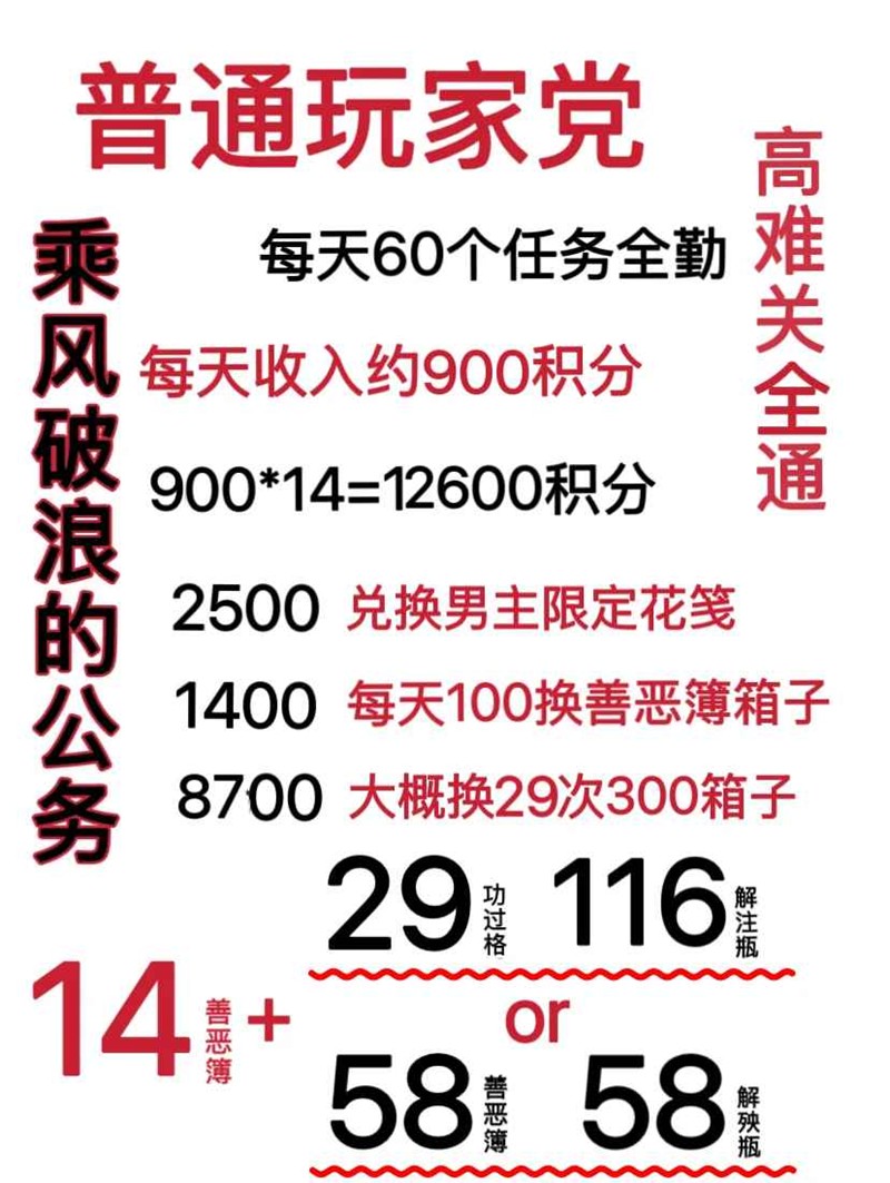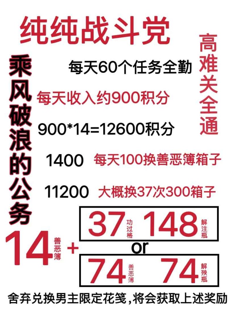 白金币任务14天全跳过,损失2月奉箱=4善恶簿