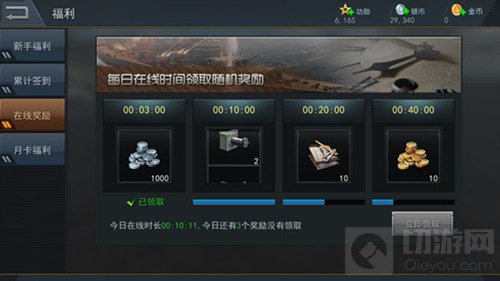 在平凡的海战日子里,还有一项福利是每一位舰长都无法拒绝的诱惑——在线奖励。目前,在线奖励共由四项抽奖栏组成,舰长们每日在线时长达到3分钟、10分钟、20分钟和40分钟时,将会分别获得一次抽奖机会,抽取《雷霆海战》中所有可能的资源奖品!