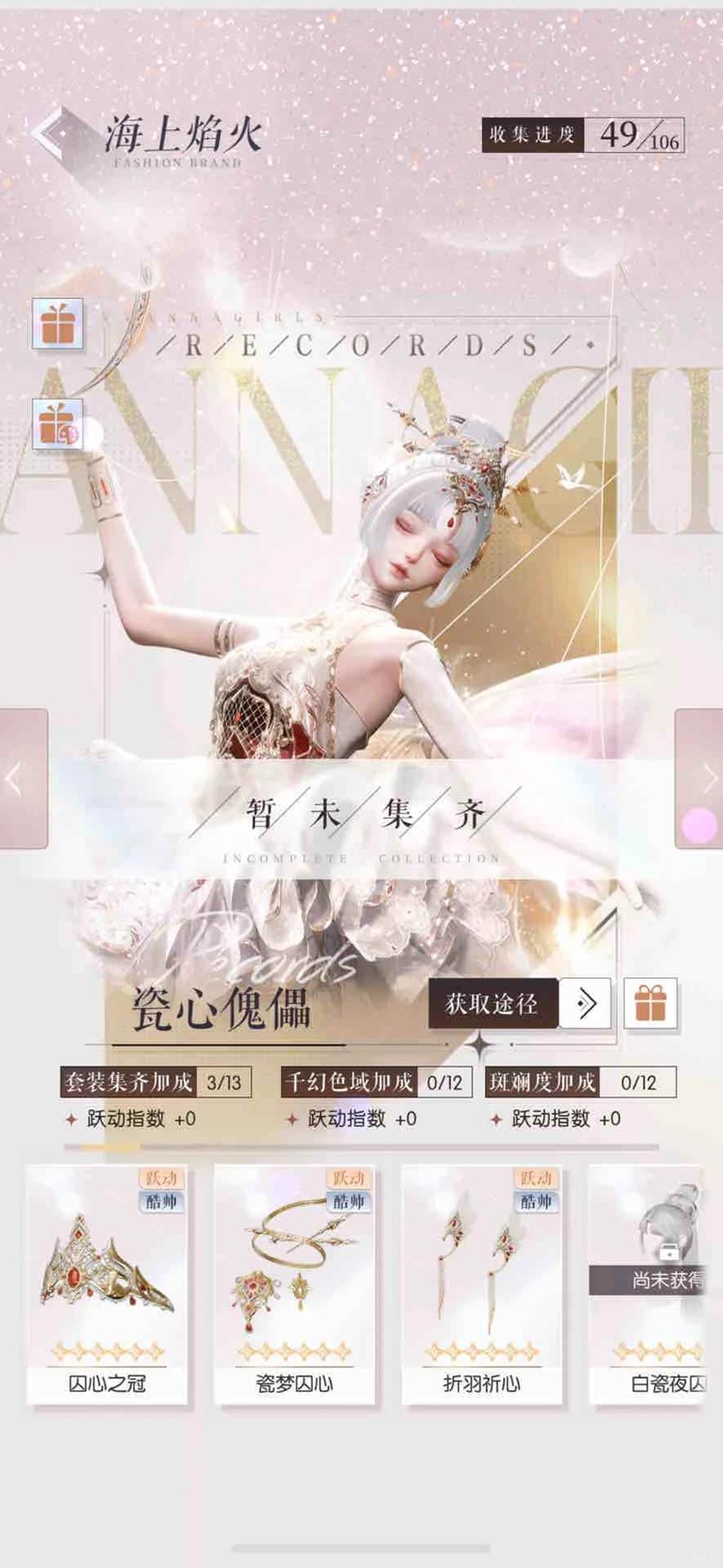 以闪亮之名游戏中,玩家能够自由定制自己的造型妆容、建造理想家园,还能从挑选面料到裁剪缝合,DIY一套独一无二的衣服。做生活美学的唯一缔造者,创造理想中生活的模样。世上最奢侈的是什么呢?“我的心中是自由与追求”丝线将朝拜刻在裙摆花纹,也刻在灵魂之上,抛弃,才能解脱。六星套装瓷心傀儡限时复刻,一起来和小编看看吧~