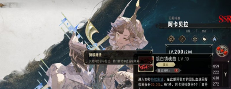 阿卡贝拉的奥义技能银白镇魂曲能够显著提升团队的血魂恢复效率,帮助队友更频繁地释放技能。这个技能在施法期间无法被打断,一旦成功释放,团队每秒钟都能获得音符加成,极大提升了战斗节奏的掌控能力。她的治疗量会随着角色练度的提升而逐步增强,确保团队在战斗中始终保持良好状态。