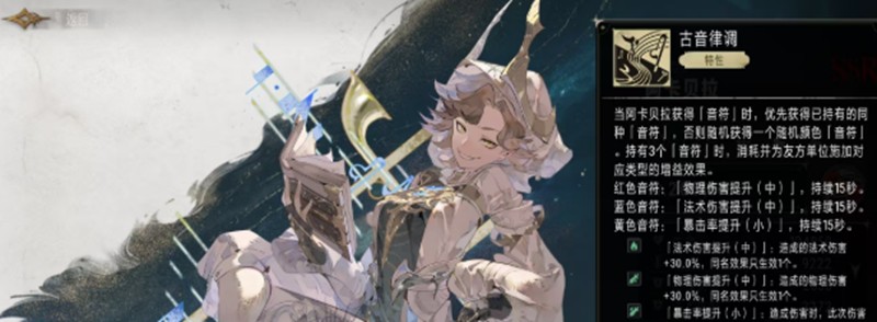 特性古音律调是阿卡贝拉的独特机制,初始携带三个音符。消耗红色音符可提升队友30%物理伤害,蓝色音符则能提升30%法术伤害,这些增益效果都能持续15秒。通过合理运用这些音符,阿卡贝拉能针对不同战斗需求为团队提供精准的辅助支援。