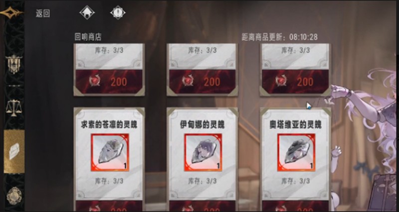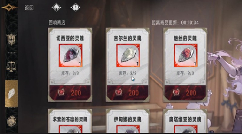 在回响商店中,玩家可以使用200个回响币兑换各种角色的灵魄,包括切尔西灵魄和吉尔兰灵魄等。商店库存充足,但建议玩家定期关注商店刷新情况,及时兑换所需角色的灵魄。积攒足够的回响币后,就能为角色养成打下坚实基础。