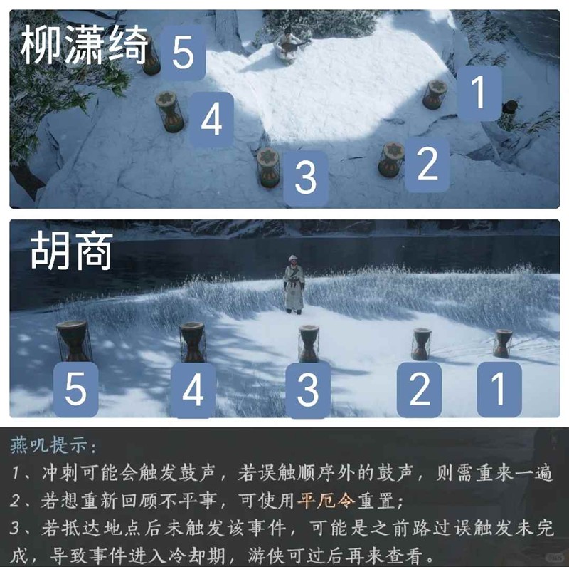 获取方式:到p2两个npc位置按数字顺序击鼓,p3是鼓对应的数字(鼓越小、越靠右,数字就越小)和可能出现的问题。