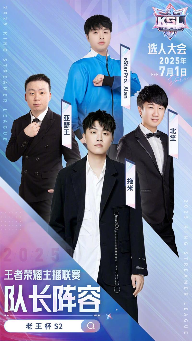 日前,官方已经正式官宣了本次老王杯S2的四位队长,他们分别是@DL丶拖米、@王者荣耀-北笙、@王添龙Alan以及@斗鱼亚瑟王。这四位队长不仅在王者荣耀领域有着极高的人气,更凭借卓越的游戏实力和丰富的赛事经验,赢得了广大玩家的认可与期待。