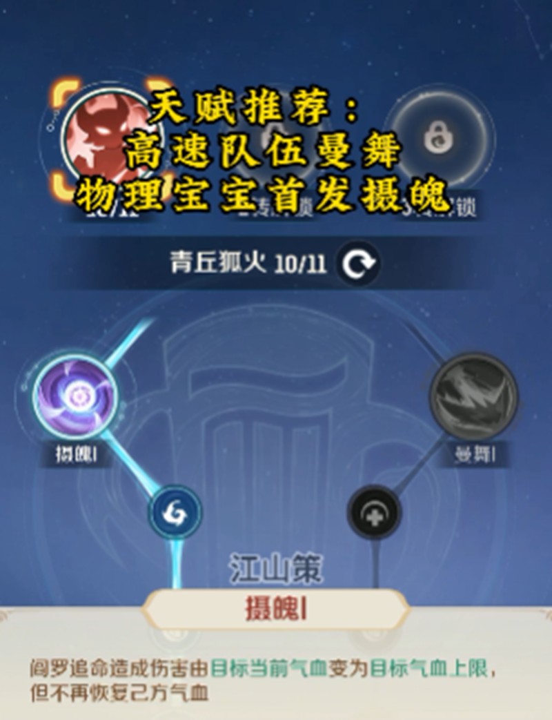 盘丝洞职业推荐选择曼舞和摄魄两个天赋方向。摄魄一天赋可以让阎罗追命技能造成基于目标气血上限的伤害,使盘丝洞也具备不错的输出能力。合理搭配这些天赋,能让盘丝洞在战斗中发挥出更强的实力。