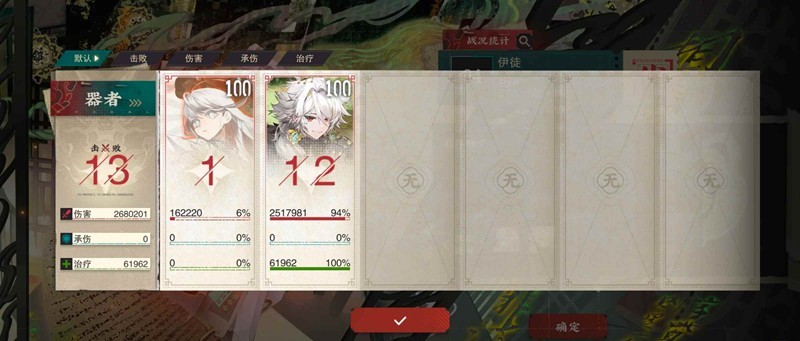 相柳由于双通没有很好的替死鬼就没打,正常打的话可以上龙哥,莫记,马蹄金吸引debuff,江崖炉远程安心输出,p6是相柳5,打的时候素纱还没三致,打到最后没控制好debuff拖得久了一点,不过也还能打,多悔棋就好了