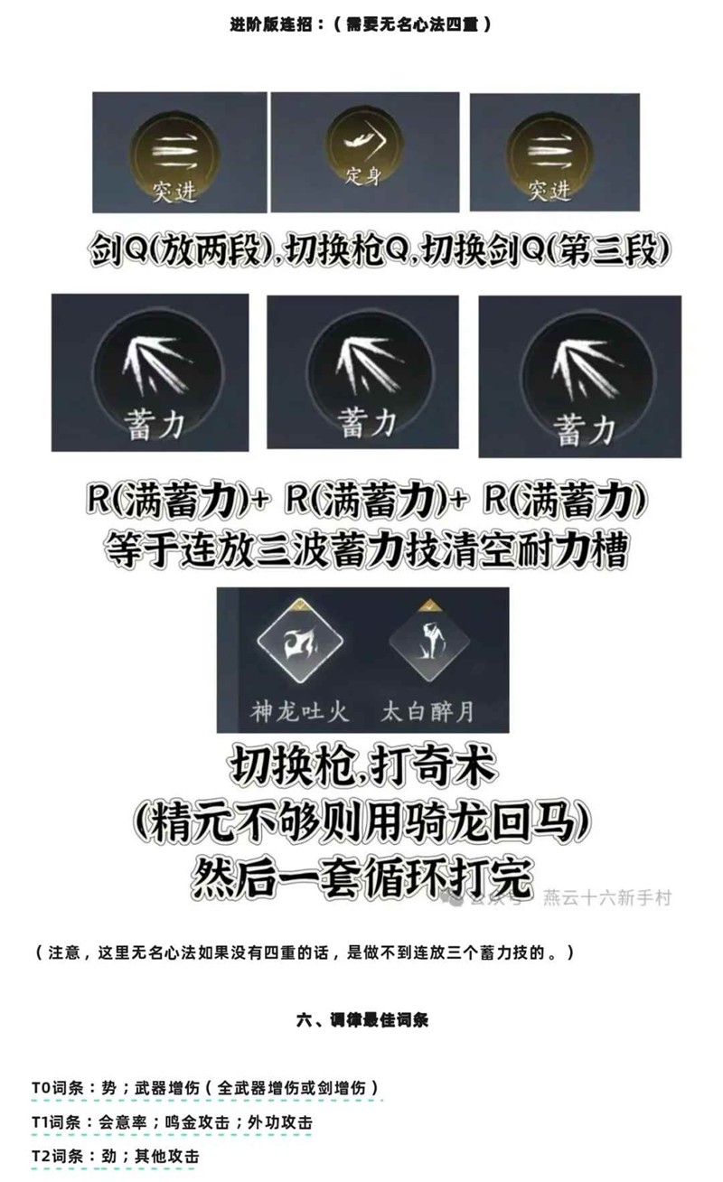提示:追求循环不追求输出可以选燎原,但如果你会优化自己的手法就带我带的心法,不会手法只靠蓄力输出并且不追求输出可以选燎原。