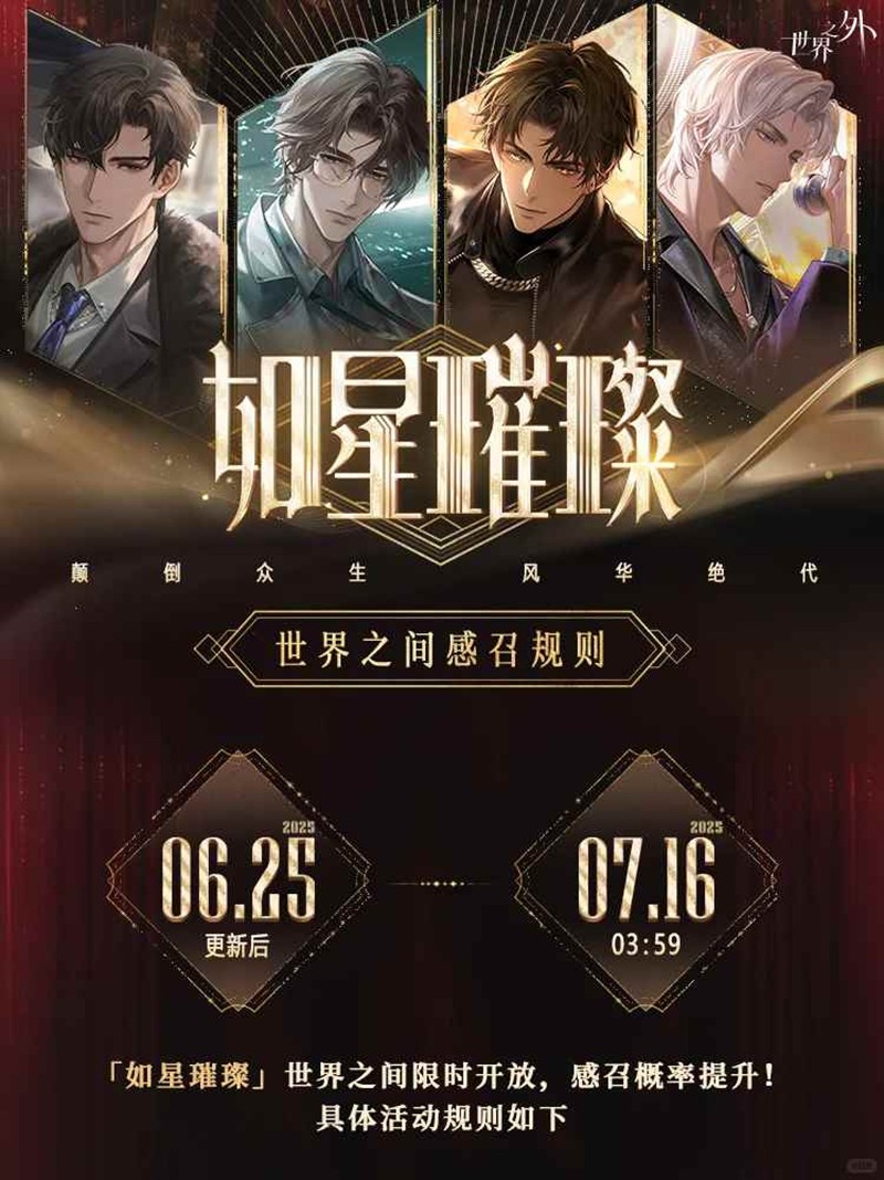 以上就是世界之外「如星璀璨世界之间」感召规则的全部内容了,更多游戏资讯,攻略内容敬请关注切游网,您的支持是我们努力的动力!
