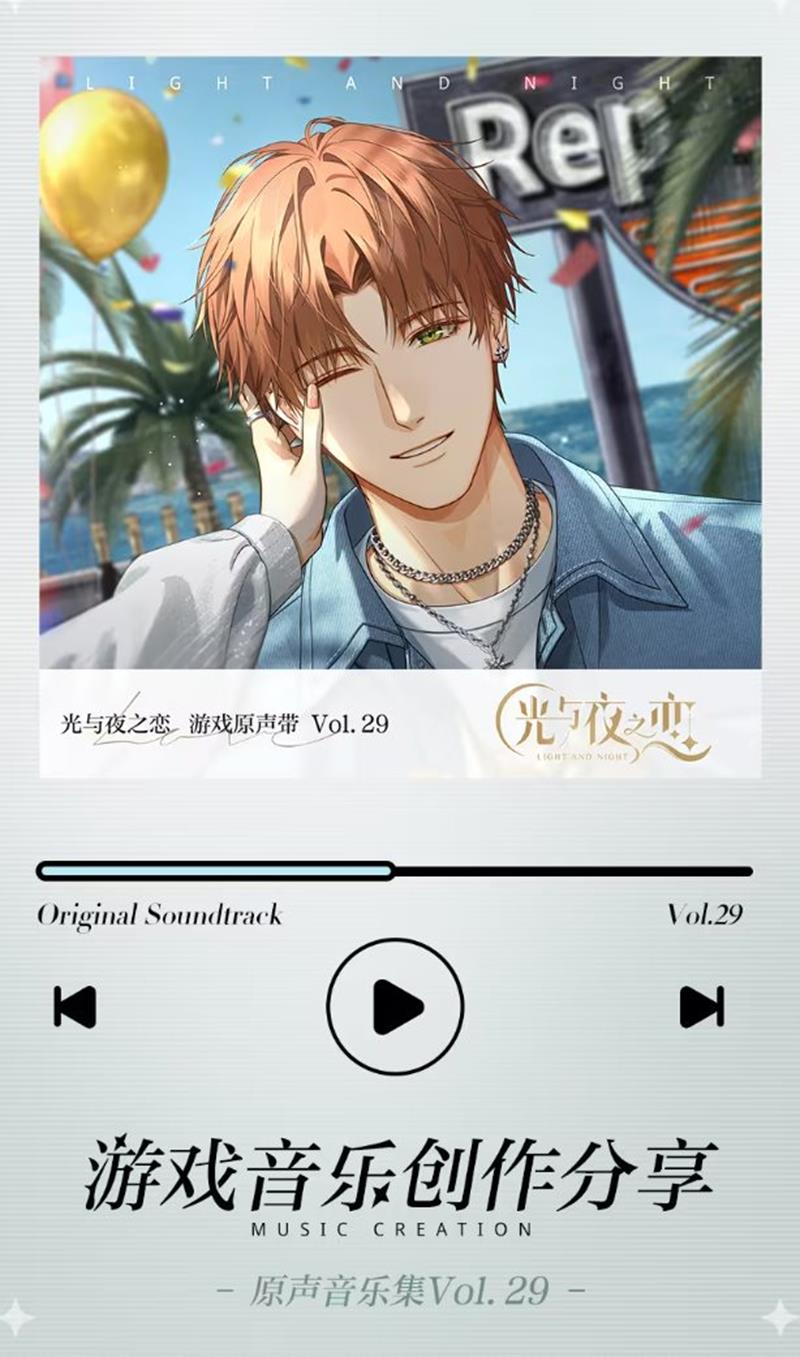 QQ音乐独家首发,玩家可以前往QQ音乐平台搜索《光与夜之恋》原声音乐集Vol.29进行收听。