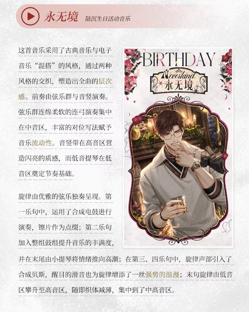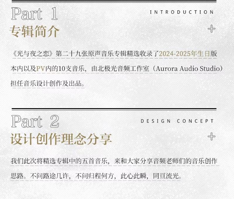 亲爱的《光与夜之恋》玩家们,期待已久的第二十九张原声音乐专辑已于6月26日正式上线!这张专辑精心收录了2024至2025年生日版本以及PV内的10支音乐,每一首都是精心挑选的佳作,旨在为玩家带来一场听觉盛宴。