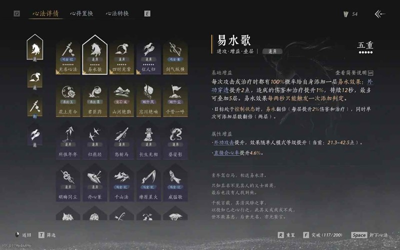 以下搭配建立在无名+易水+威猛+千山的心法组合进行调律词条构建。