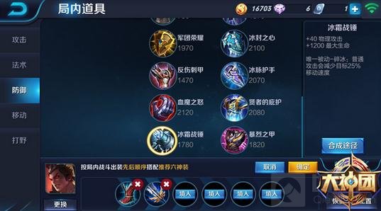 半肉型吕布的中期装备则是风暴巨剑转破军,不仅可以增加一定的物理攻击,同时更重要的是破军为吕布带来的被动。吕布的一技能,范围是很大的,尤其是附魔后的方天画斩,攻击力和范围更是大大提高,通常配合友军的攻击,两三下就可以将敌人打成残血。这时破军的被动就发挥出来了,它可以帮助吕布更好的斩杀低血量敌人。而劣势的话则是冰霜战锤,增加自身生命和物理攻击,普攻可以减少敌人的移动速度。然后鞋子选择上跟纯肉吕布一样,即冷静之靴,减少技能冷却时间,增加输出伤害。