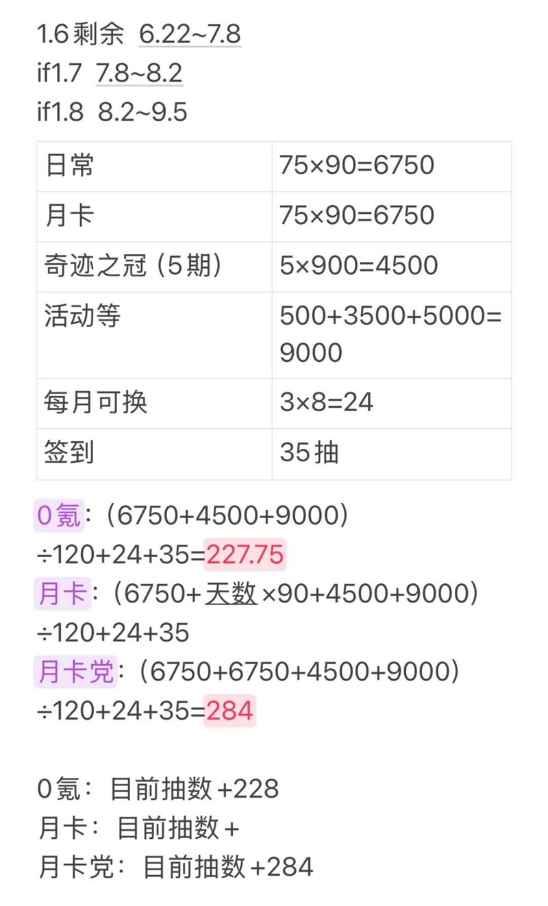 月卡党:目前抽数+284