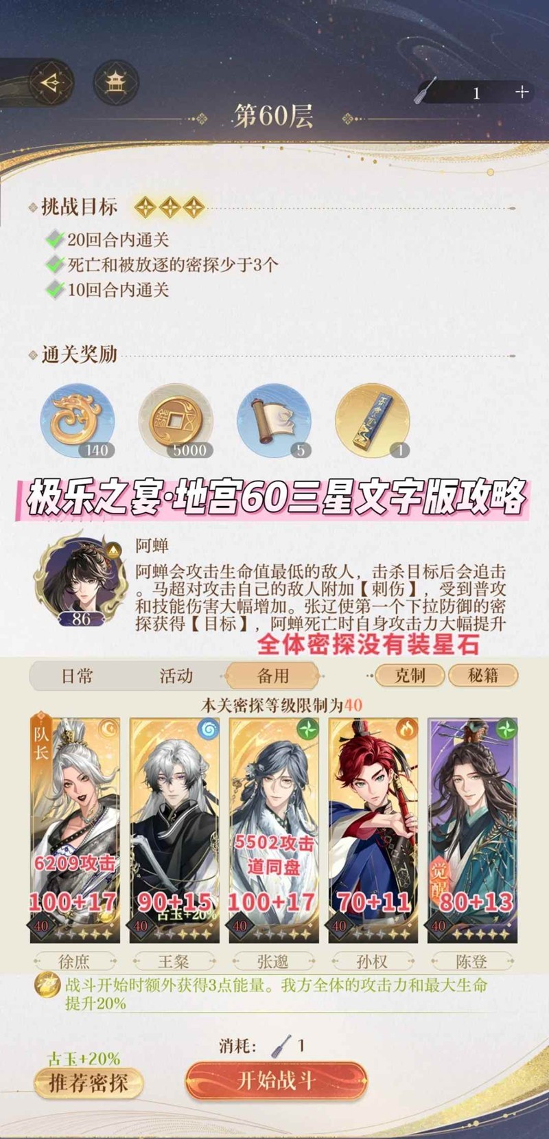 以上就是如鸢地宫攻略极乐之宴·地宫60三星文字版攻略的全部内容了,更多游戏资讯,攻略内容敬请关注切游网,您的支持是我们努力的动力!