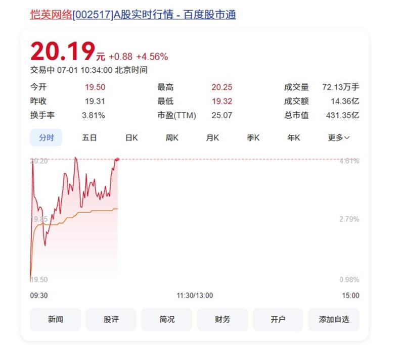 最后值得一提的是,6月30日,早盘时间,游戏板块集体爆发,截至当日上午收盘,涨幅居A股第一。恺英网络(002517.SZ)表现突出,显示出市场的积极性。