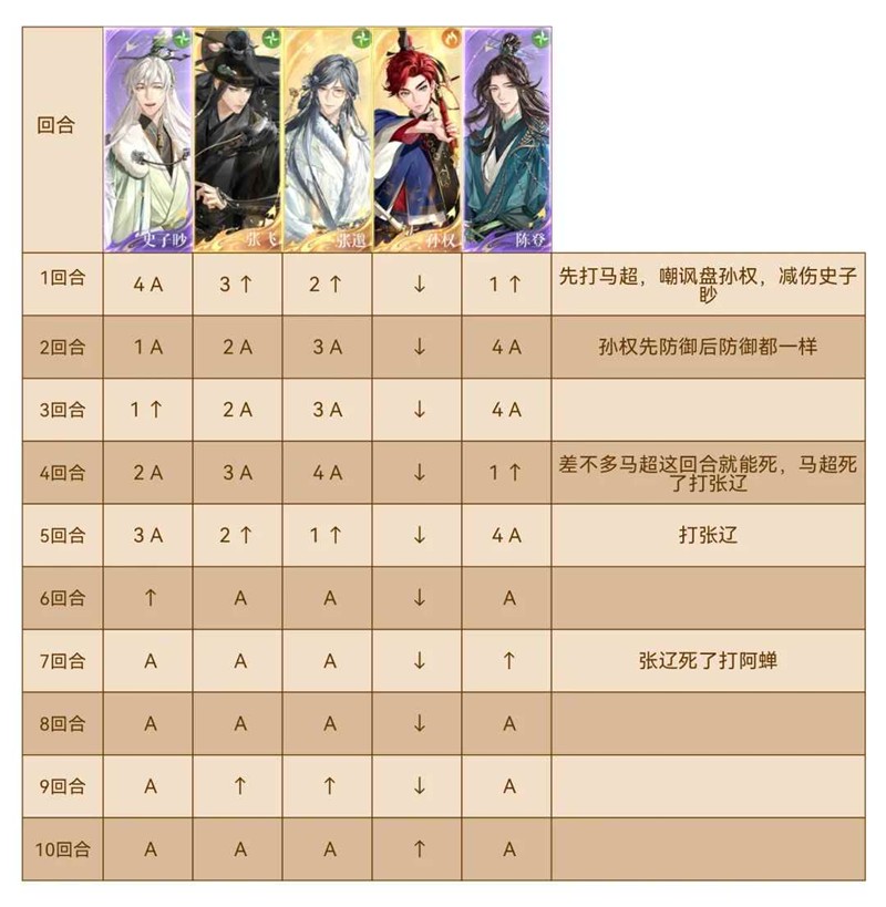 3:张辽:攻击第一个下拉防御的人。阿蝉先死,他会狂暴,所以马超死后,先杀他。