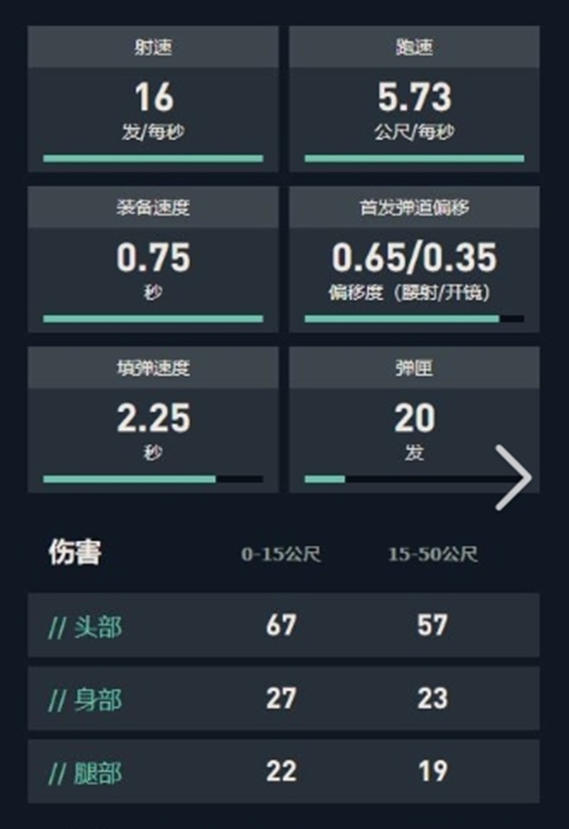 蜂刺的售价仅为1100游戏币,这个价格在无畏契约的武器系统中相当亲民。在0-20米范围内,蜂刺对无甲敌人的头部伤害达到67点,身体伤害27点,腿部伤害22点。即便在20-50米距离,伤害衰减也不明显,依然保持着不错的杀伤力。不过面对有护甲的敌人时,伤害会有所下降。