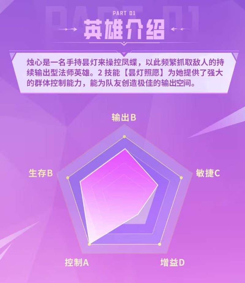 烛心是一位神秘的法师,其技能设计灵感来源于古代传说中的烛光与蝴蝶。她擅长利用昙灯和凤蝶进行远程控制和输出,非常适合团队配合。烛心的极阴之体最擅引灵,那些灵力化为翩翩蝴蝶,成为她力量的一部分。