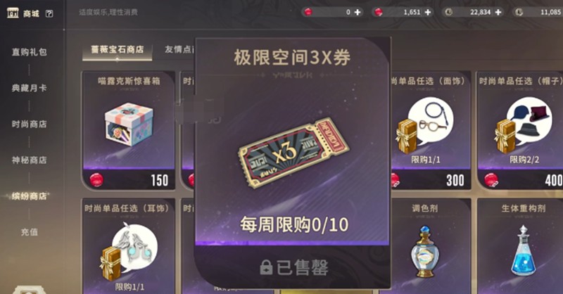 缤纷商店每周限购的极限空间三倍券是最值得入手的道具,使用后能让副本掉落率提升近三倍。这种加成效果在刷装备时特别实用,能大幅提高资源获取效率。