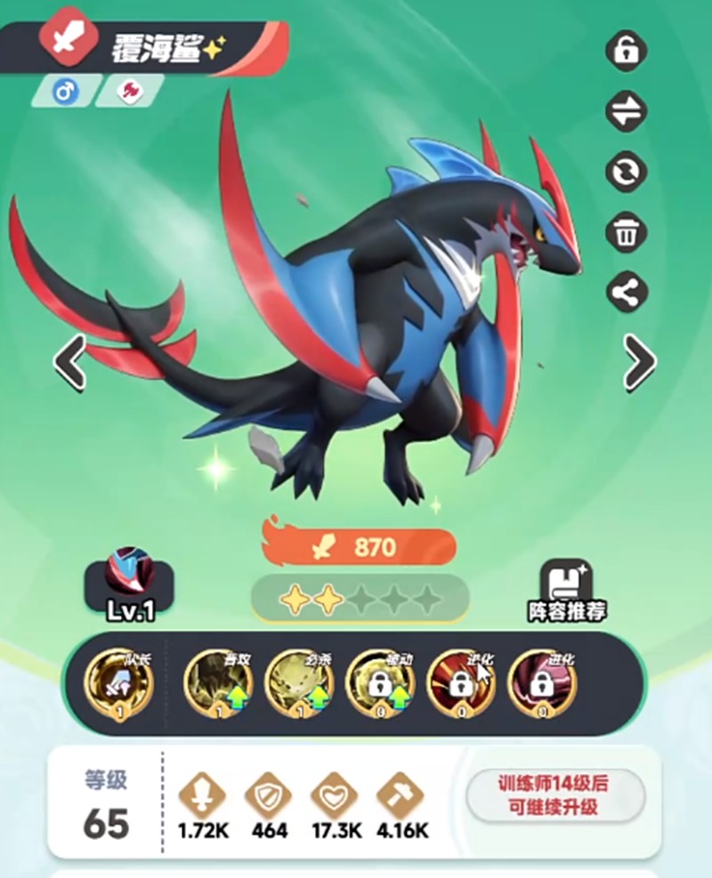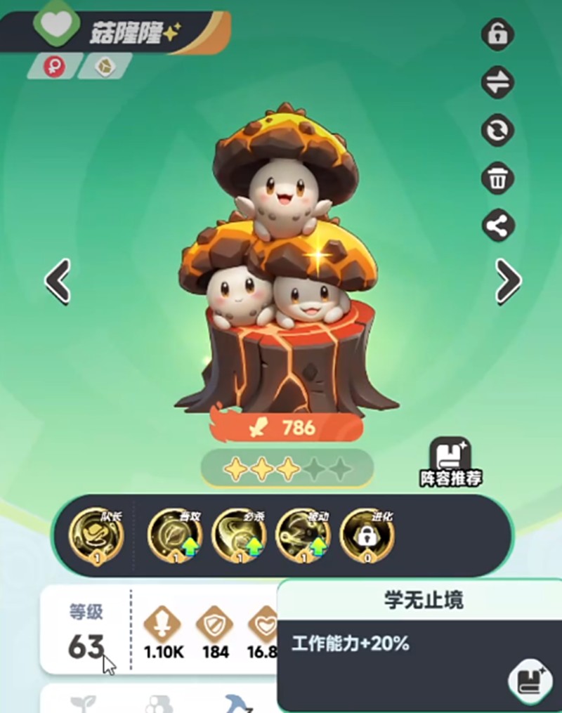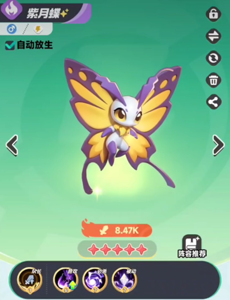 覆海鲨的最佳搭档包括紫月蝶和岩角牛。紫月蝶适合放在前排提供辅助支援,岩角牛则能在后排持续输出。另一个不错的搭配选择是菇隆隆,这个前排角色能提供护盾保护,为覆海鲨和后排队友创造更安全的输出环境。