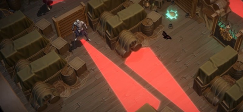 进入机关大门后左转可以找到宝箱,开启机关后进入密室。这时需要阻挡左上方的敌人视线,然后来到墙体对面吸引上下敌人的注意力。打开障碍机关获得宝箱后,绕到后面获取机关线索即可完成这部分内容。玩家可以化身为蝙蝠飞行,避开巡逻敌人的视线范围。
