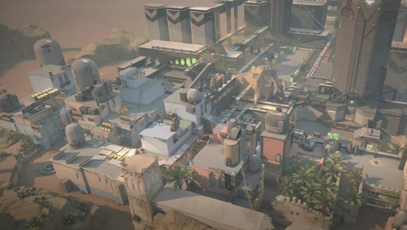 裂变峡谷将丛林和沙漠地形完美融合,视野开阔且障碍物较少。隐世修所采用封闭式设计,包含可破坏的门结构和复杂的三包点布局。亚海悬城主打巷战玩法,设置了可关闭的包点门,不太适合重型单位作战。