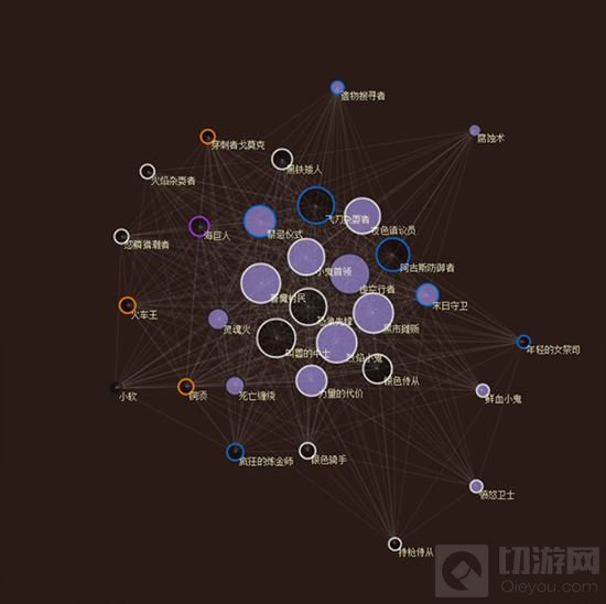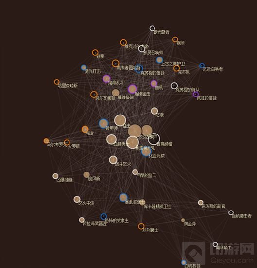 相反,两张没有直线相连的卡意味着它们之间互相排斥。而这在我们的可视化的数据中,就很容易反映出核心卡被大多数卡组所使用(例如小斧子和斩杀),它们出现在图表的中间。而一些在特定卡组中使用的卡(例如阿莱克斯塔萨的勇士)出现在图表的外围。