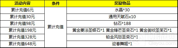 福利提示:每日充值活动可以和累计充值活动同享哦!(例如你在8月22日的每日充值中充值198元,不但可以获得每日充值的全部奖励,还能获得累计充值活动的通用天赋石*10、水晶*30、钻石*188,黄金菱法圣银石*1 黄金锋芒圣荣石*1 黄金御纹圣茉石*1奖励!)