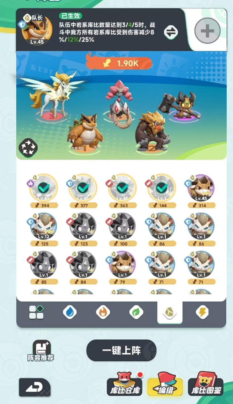随着游戏进程推进,玩家可以逐步收集更多岩系橙宠。中期推荐使用菇隆隆、坚甲龟、珑美尔、阿泰罗和巨锤灵组成的阵容。替换顺序上,建议先用珑美尔替换掉非岩系宠物,如果有坚甲龟的话优先替换掉岩角牛。