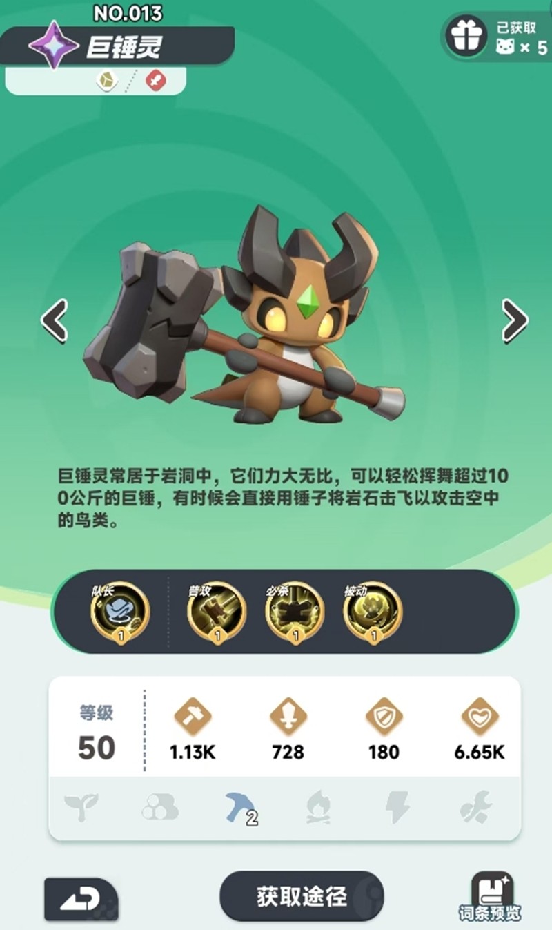 在游戏前期,由于岩系宠物数量有限,建议采用三岩加两强力宠的混搭方案。核心三岩宠物选择巨锤灵、岩角牛和阿泰罗,另外两个位置可以搭配任意输出或辅助型宠物。需要注意的是,不要同时上阵两只坦克宠,以免触发气势低落效果影响战斗表现。