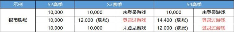 如:S1赛季达到神话,S2赛季登录获得288,888银币且未使用,S3赛季登录后膨胀至346,666银币。