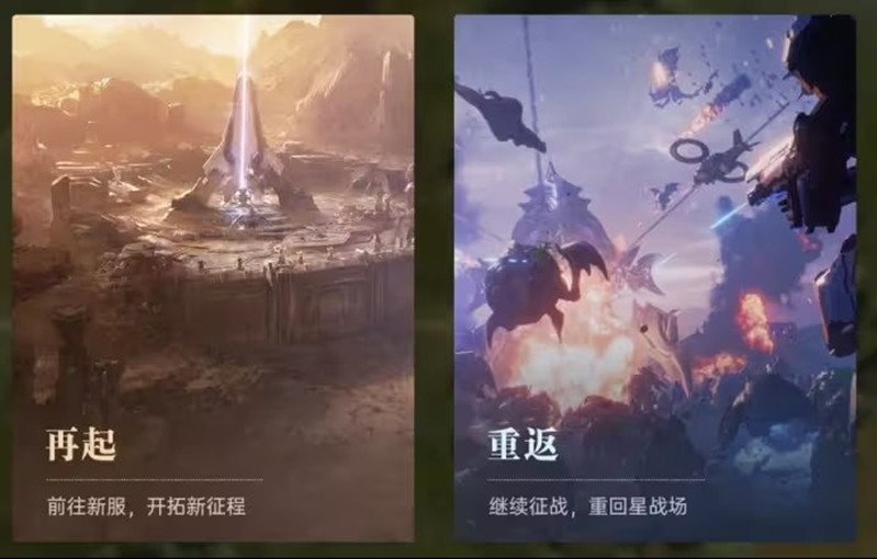 触发后,指挥官将看到清晰的回归选择界面,分为【再起】和【重返】。只有在此界面进行确认选择后,回归之旅才算正式开启!回归入口保留7天,在此期间可随时返回完成选择。
