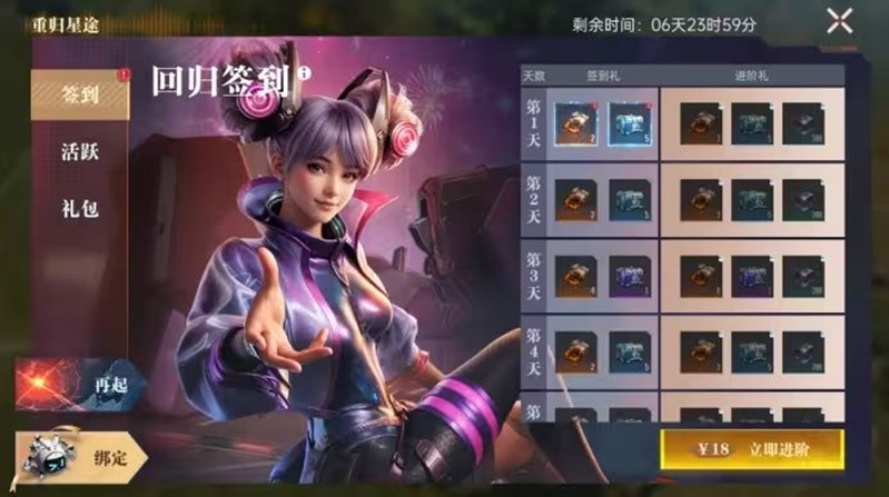 温馨提示:签到奖励需当日登录领取,不支持补领。但购买进阶礼之后,累计奖励可在满足条件后一键领取。