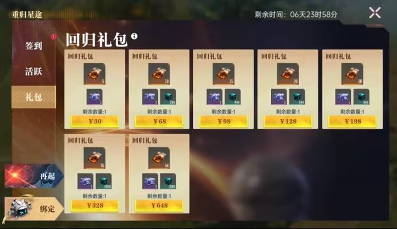 回归特供超值礼包限时上架,助您快速提升,重拾巅峰战力!