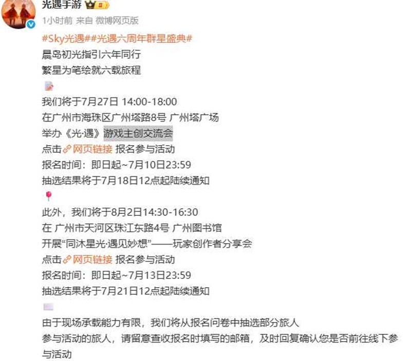 光遇官方发布了最新光遇六周年主创交流会,玩家创作者分享会的时间内容,玩家可以通过《光遇》官方网站或相关社交媒体平台进行报名。让玩家们能够与《光遇》的主创团队近距离接触,共同庆祝这个特别的时刻。