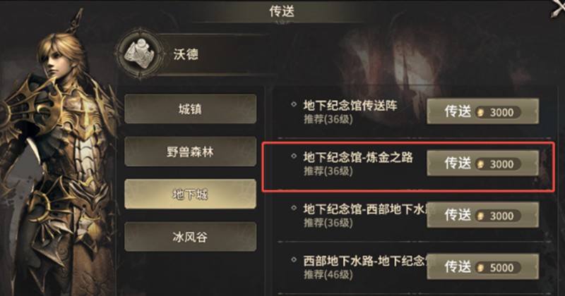 第二个任务点在地下纪念馆区域,坐标为(160,294)。这个任务需要玩家达到36级才能解锁。传送时选择地下城页签中的炼金之路传送点,进入后可以通过小地图自动寻路功能找到暴风骑士团小队附近的流民。两个任务都有时间限制,必须在规定时间内完成物资交接。
