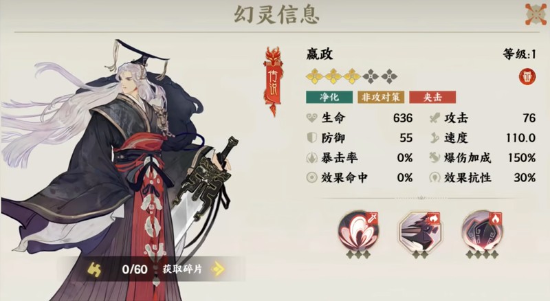 嬴政作为前排幻灵,普通攻击能为后排队友创造夹击机会。被动技能可以在敌人使用非攻击技能时净化负面效果。能量技不仅能造成全体伤害,还能提升队伍的暴击率,为输出型队友提供强力支援。