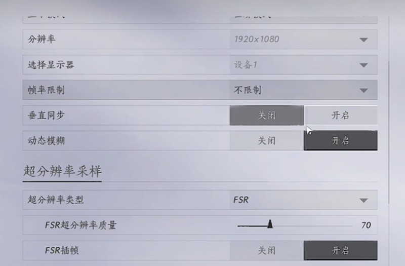 首先进入游戏画面设置界面,将帧率限制调整为"不限制",这样可以充分发挥显卡性能。同时关闭垂直同步功能,并开启动态模糊效果,这样在快速移动时画面会更加自然。超分辨率技术选择FSR模式,并开启插帧功能,虽然RTX3060支持DLSS,但非40系显卡开启DLSS提升效果不明显。