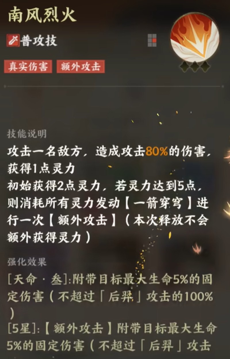 后羿的普通攻击看似简单,实则暗藏玄机。每次攻击都能为后羿积累1点灵力,当灵力达到5点时可以触发额外攻击效果。这个机制让后羿在持续作战中能打出更高的伤害,同时也需要玩家合理规划攻击节奏。