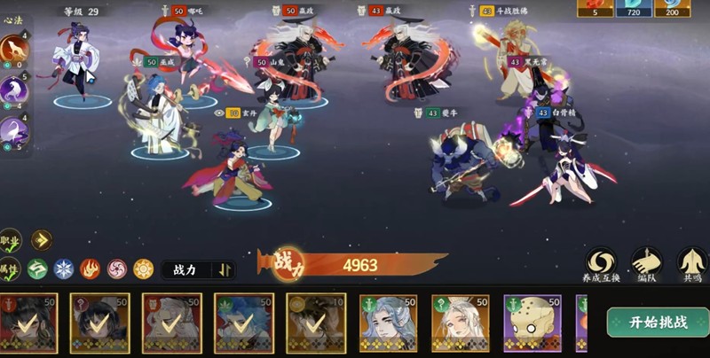 这是一套纯火系阵容,核心输出是指间山海中的强力火系角色哪吒和后羿。前排建议选择火系坦克如嬴政或貔貅,确保队伍中有4名以上火系成员来激活元素加成。这套阵容爆发力极强,适合快速解决战斗。